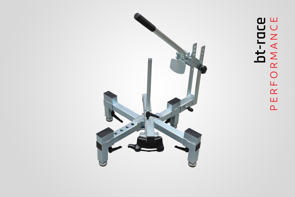 Zusammenschiebbares Reifenmontiergerät RM1 von bt-race. Schnell einsatzbereit und für Transport auf engstem Raum.
